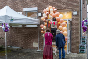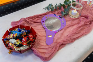 Gemäß dem diesjährigen Motto ist alles Rosa/pink gehalten. Viele der Dekoartikel wurden von den Kindergartenkindern gebastelt.
