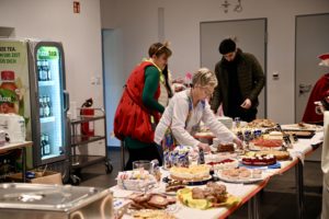 Ein reichhaltiges Kuchenbuffet wartet auf die Gäste. Die Torten und Kuchen waren gespendet.